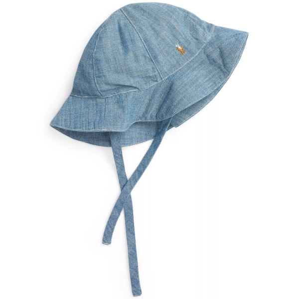 男女兼用アイテム。マルチカラーのポニー刺繍がキュートなインディゴ染めのベビーハット。お洋服に合わせやすいシンプルなデザイン。あごヒモ付きです。出産祝いなどのプレゼントにもおすすめ。